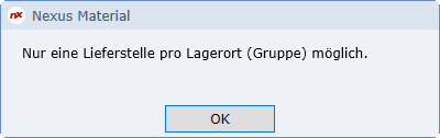Wird versucht, dieselbe Lieferstelle einem anderen Stationslager zuzuordnen, so erscheint folgende Fehlermeldung.