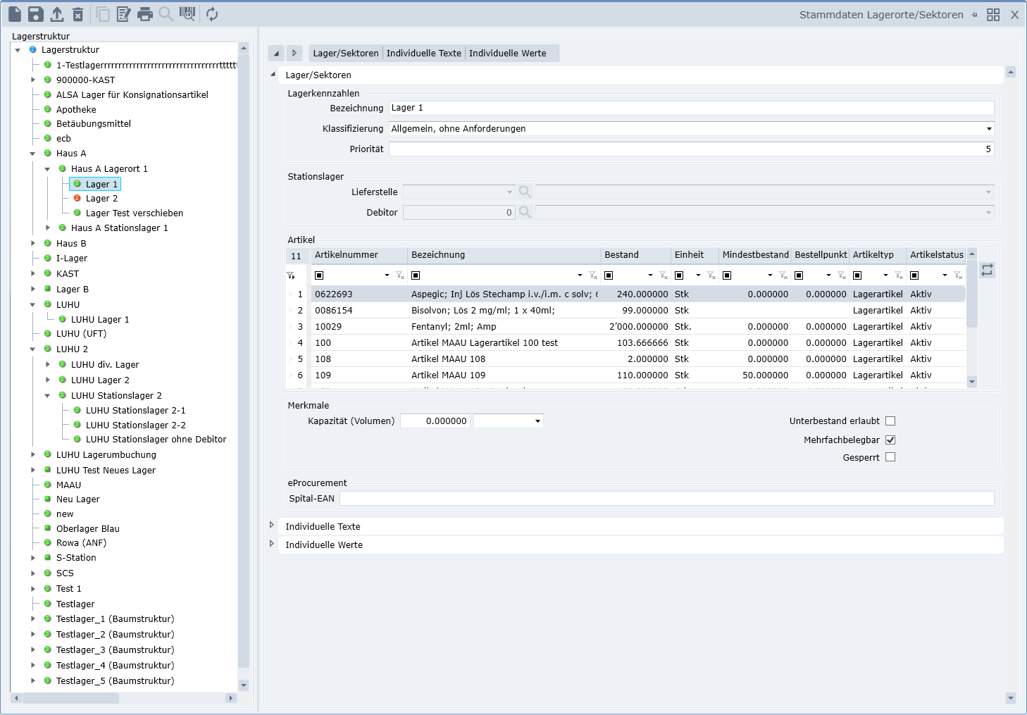 - Die Stationslager müssen mit dem Klassifizierungstyp „Stationslager“ gekennzeichnet werden.