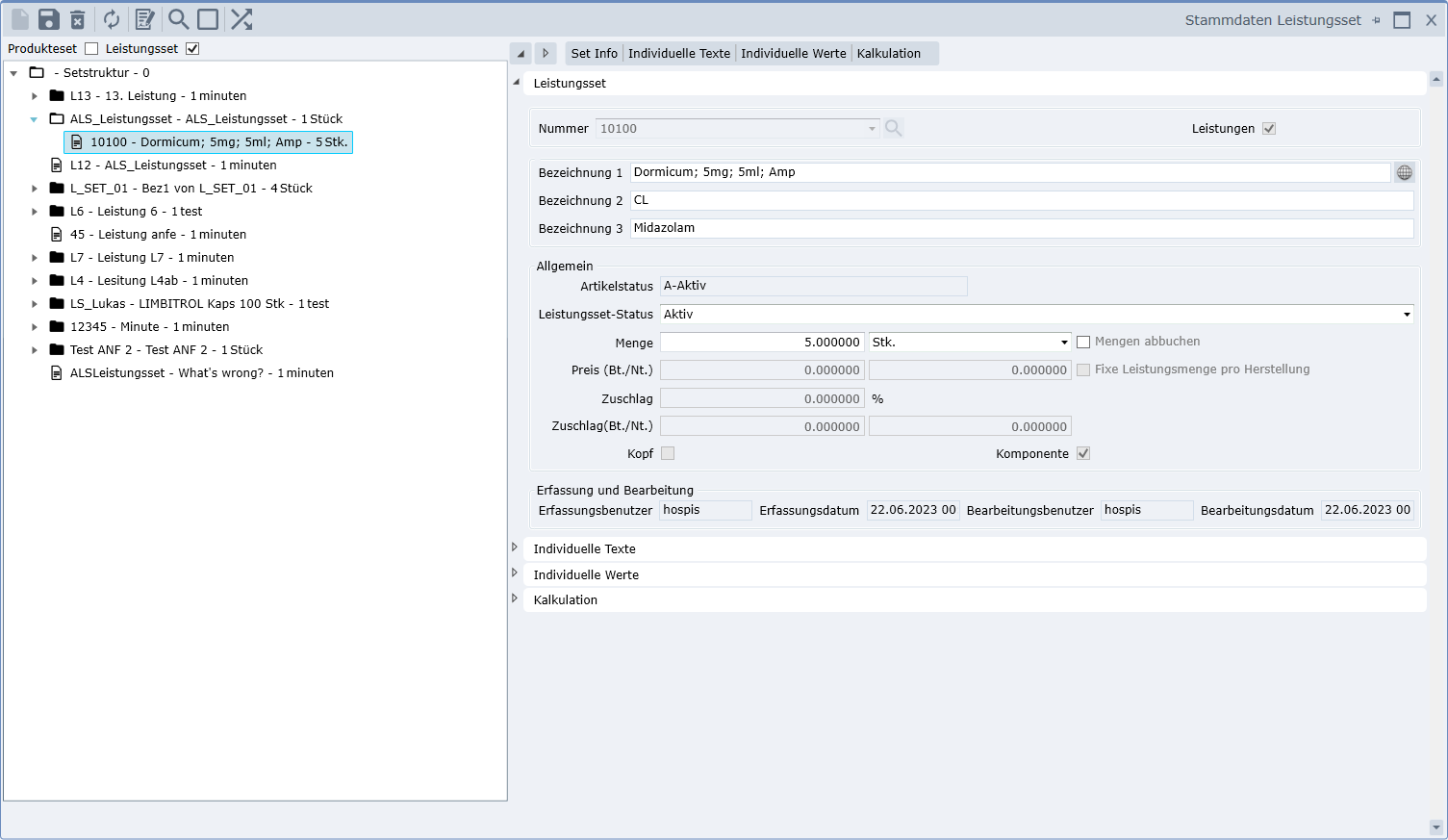 Leistungsset findet in der Fremd-/Kleinfakturierung i.d.R. keine Verwendung, daher erlauben wir uns hier auf eine nähere Beschreibung zu verzichten. Leistungen werden jedoch häufiger einem Produkteset für die Materialbewirtschaftung zugeordnet. Deswegen möchten wir an dieser Stelle auf den Abschnitt «Produkteset» unseres Handbuches verweisen.