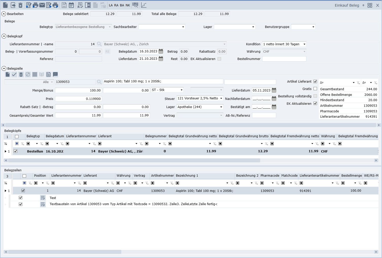 Mit diesem Programm kann eine Einzelbestellung direkt für einen Lieferanten erfasst werden.