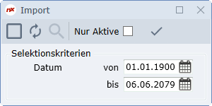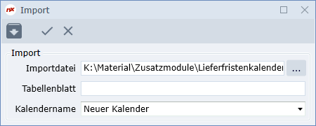 Öffnet die Importmaske um eine Kalendervorlage (Excel-Liste) zum ausgewählten Kalender zu importieren.