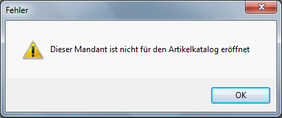 Wird versucht den Artikelkatalog von anderen Mandanten aus zu öffnen, erfolgt folgende Hinweismeldung.