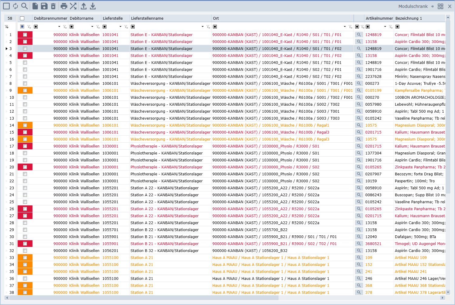 NEXUS / MATERIAL NEXUS / MATERIAL - Handbücher Handbuch MATERIAL NX Stammdaten Current: Modulschrank (früher: Fehlbestandserfassung) Modulschrank (früher: Fehlbestandserfassung) ButtonsIconNameBeschreibungZurücksetzen????Aktualisieren????Suchen????NeuNeuer Eintrag kann erfasst werdenSpeichernDie Änderungen im Grid werden gespeichertLöschenDie selektierten Zeilen können gelöscht werdenDrucken????Ersetzen????ExportDas ganze Grid wird in ein Excel-File exportiert.→ Kann für den Import als Vorlage verwendet werdenImportMithilfe einer Excel-Datei können neue Einträge importiert und erfasst werden ×