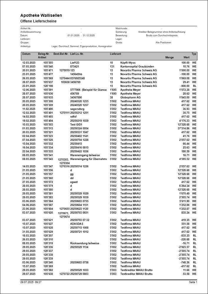 Bevor ein Inventurlauf gemacht wird, ist zu empfehlen zuvor die Liste "Offene Wareneingänge" zu kontrollieren und evtl. Fehler zu korrigieren. Damit verhindern Sie, dass evtl. Fehler schon mit dem Inventurlauf korrigiert wurden und eine evtl. anschließend notwendige Korrektur von offen gebliebenen Wareneingängen die Bestandeskorrektur wieder aufhebt.