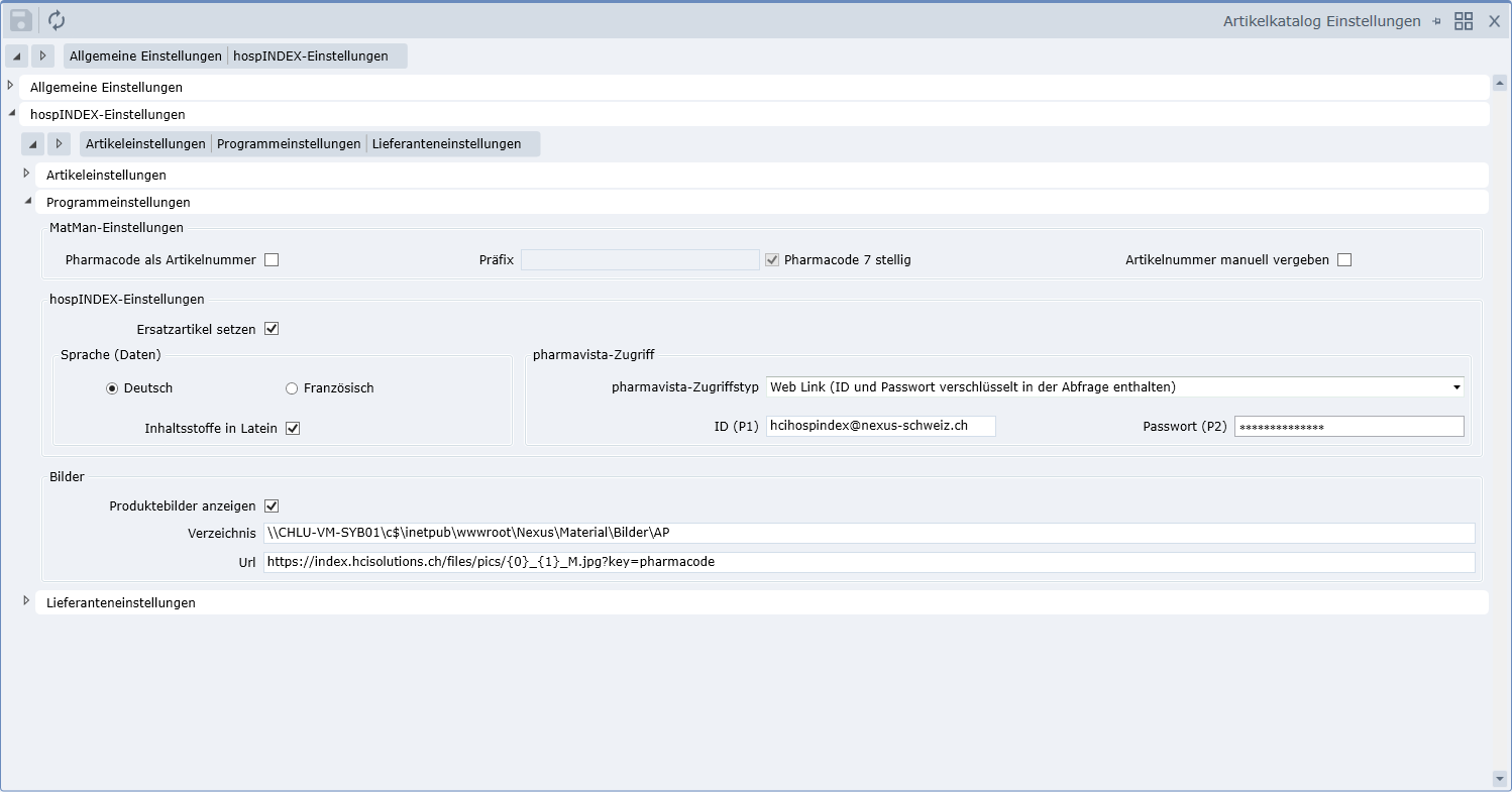 | Produktebilder anzeigen | Wenn aktiv, so werden automatisch Bilder zum jeweiligen Artikel angezeigt, sofern in der hospINDEX-Datenbank verfügbar sind. Die Bild-Informationen werden direkt über die Internetverbindung beim NEXUS Partner HCI Solutions AG abgerufen. |