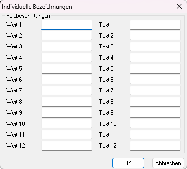 die Möglichkeit haben, die Feldbeschriftungen individuell zu setzen.
