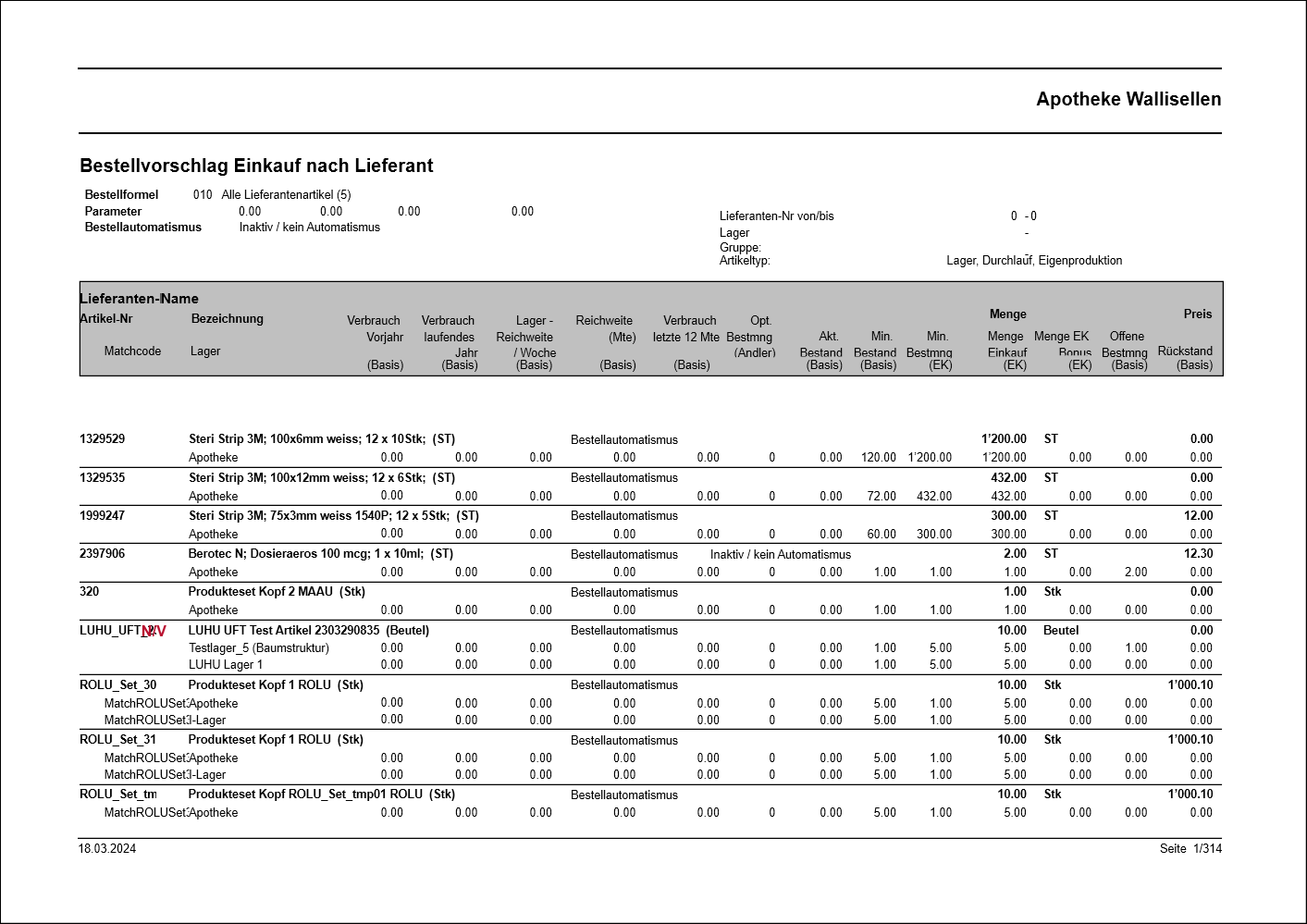 Überschreitung Bestand | Gibt den Prozentsatz an, um den der aktuelle Bestand den berechneten Bestellvorschlag überschreiten darf, bevor keine neue Bestellung ausgelöst wird. |