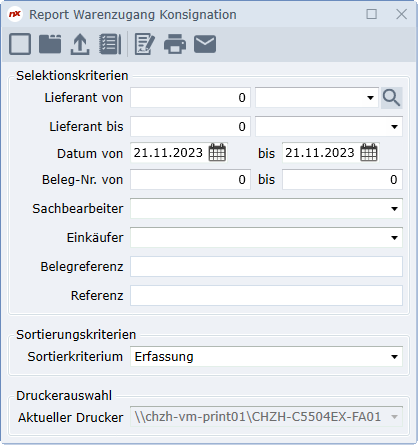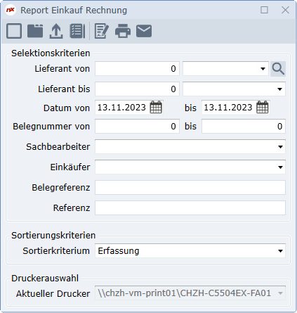 Sortierkriterium | Auswahl zwischen Erfassung, Datum und Beleg |