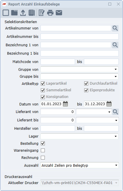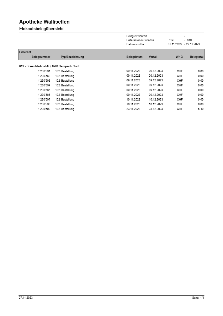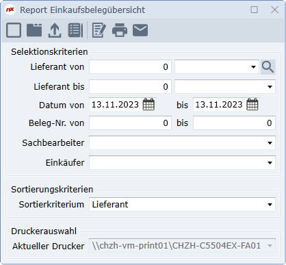 Sortierkriterium | Auswahl zwischen Lieferant, Datum und Beleg |