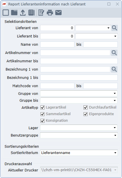 Sortierkriterium | Auswahl zwischen Lieferantenname oder Lieferantennummer |