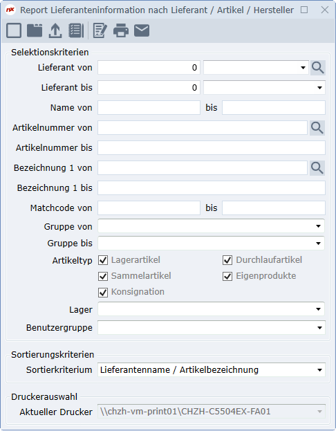 Lieferanteninformation nach Lieferant / Artikel / Hersteller