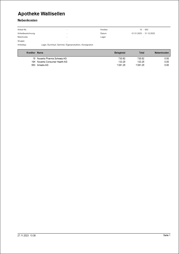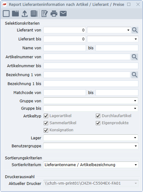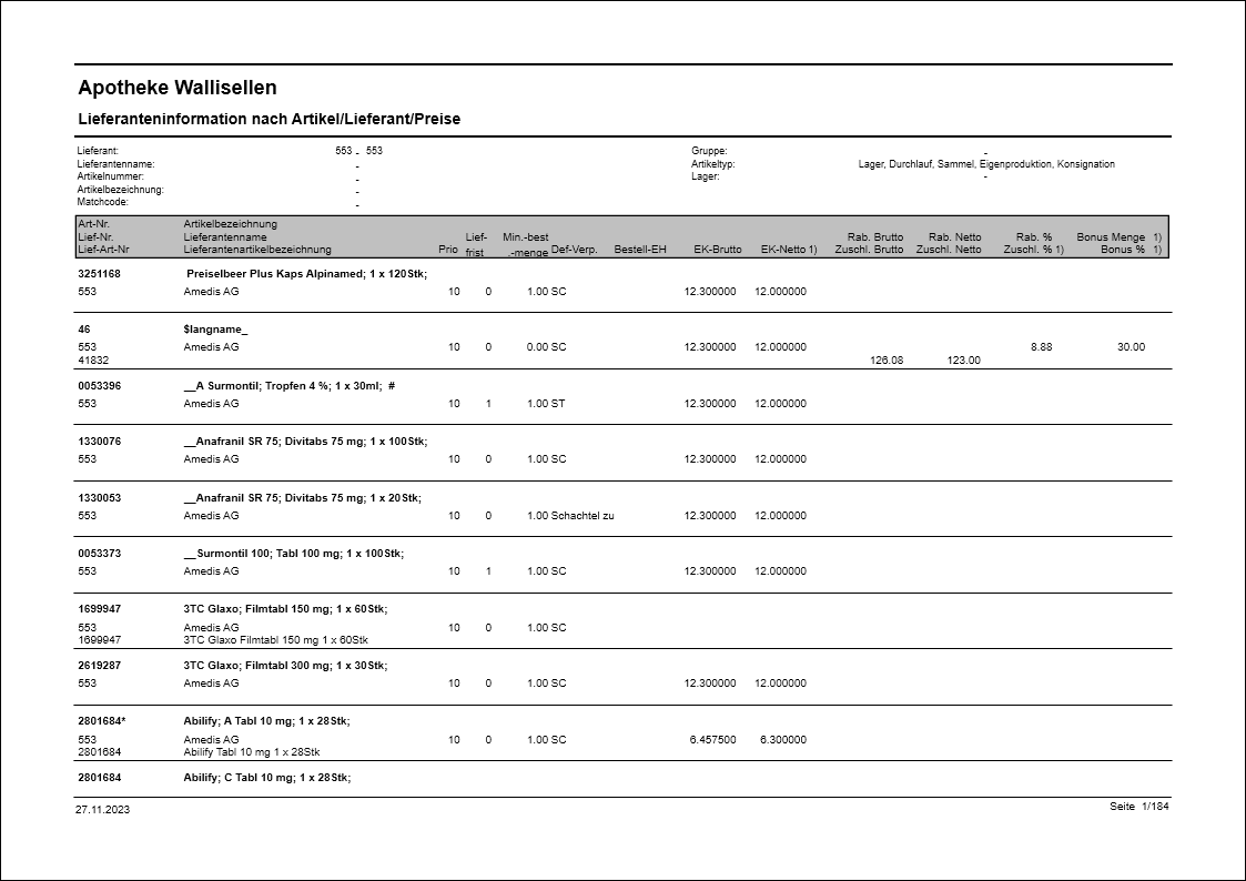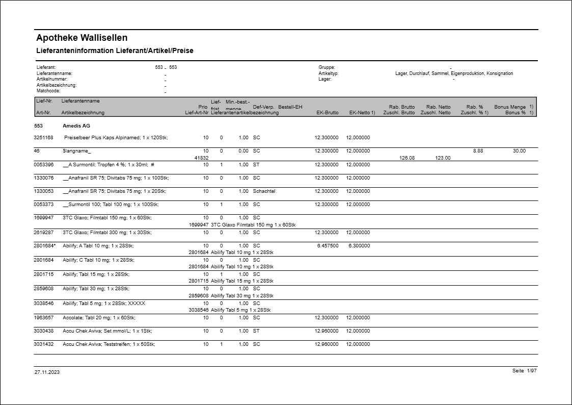 Lieferanteninformation nach Artikel / Lieferant / Preise