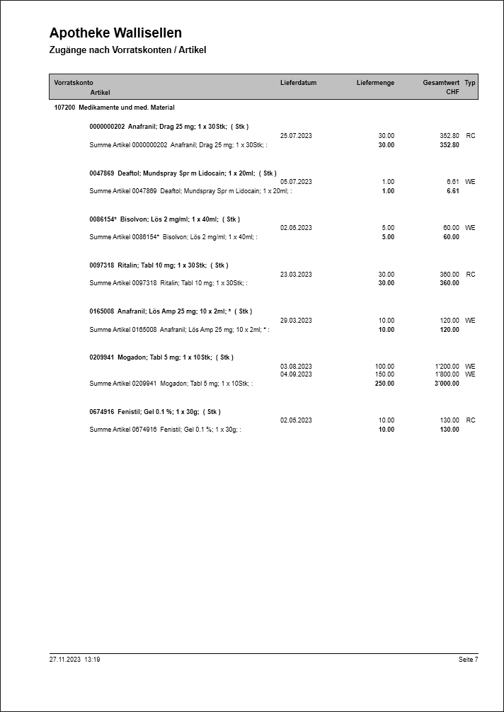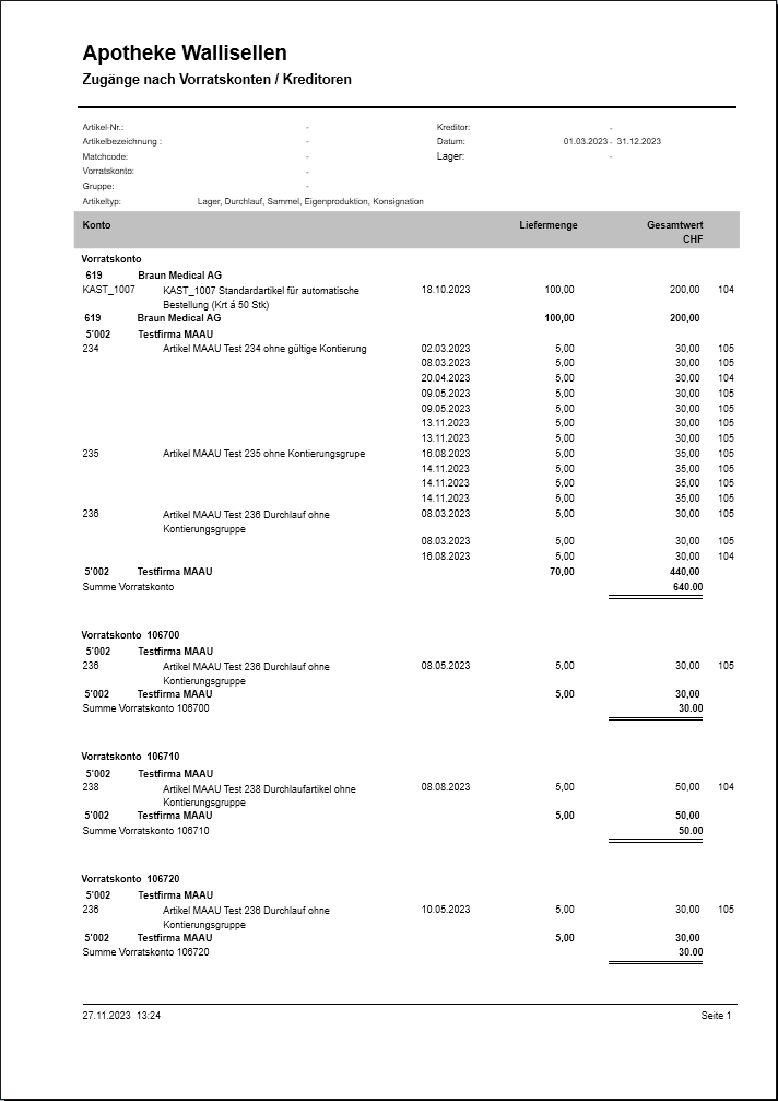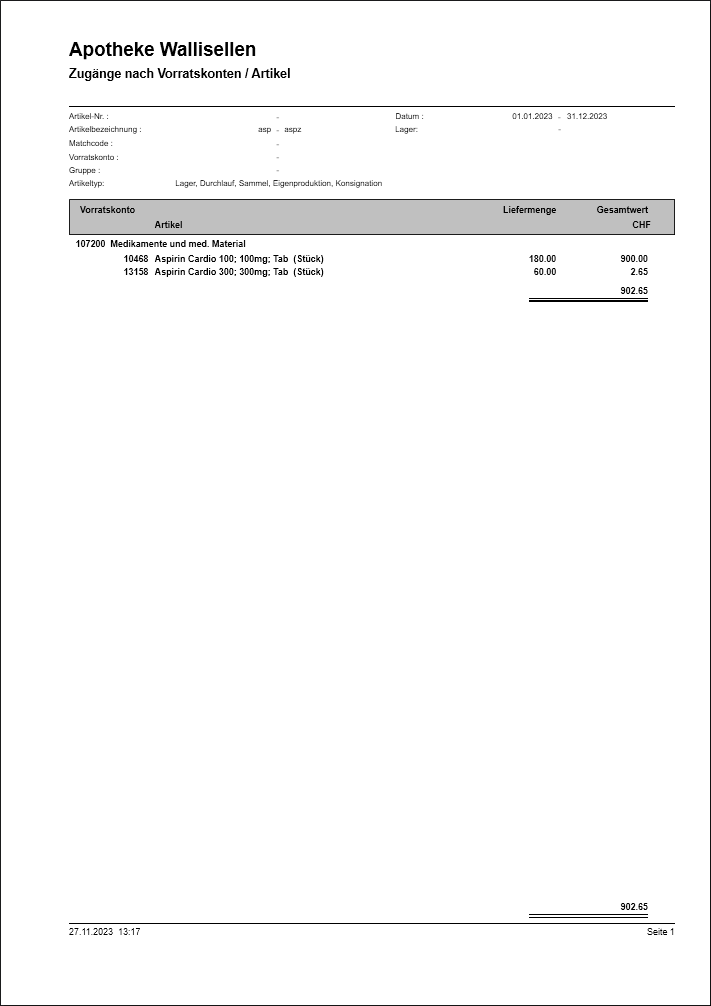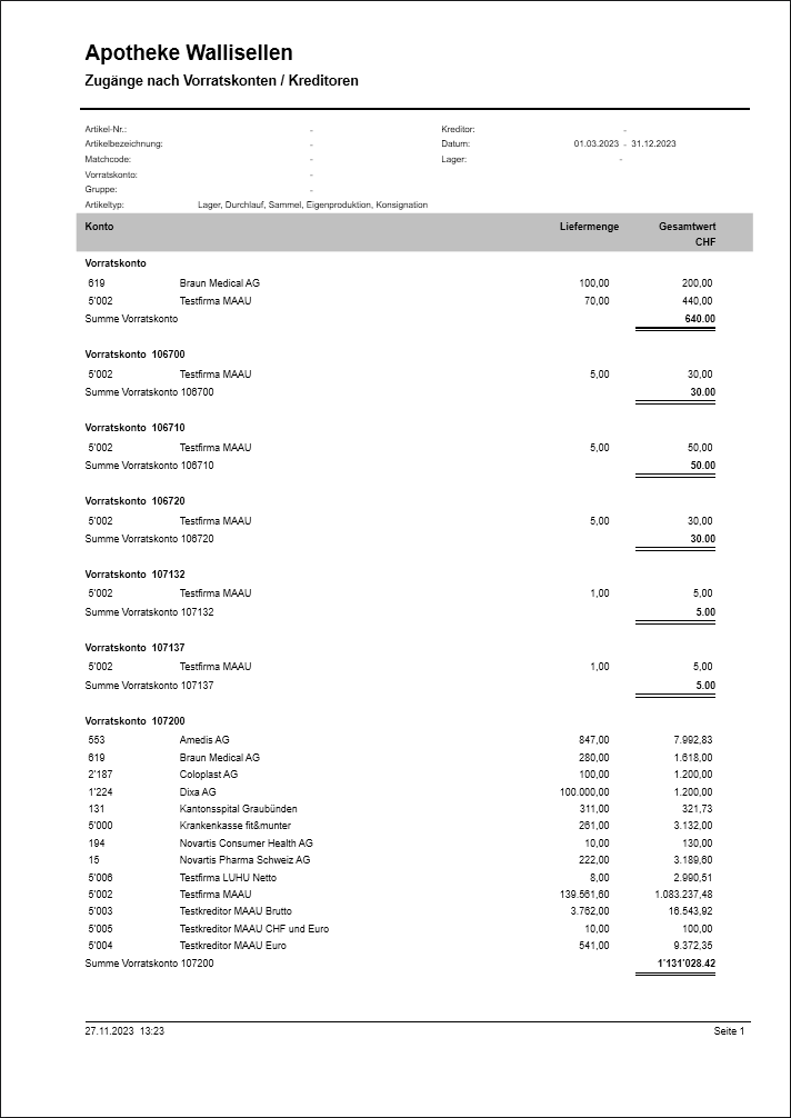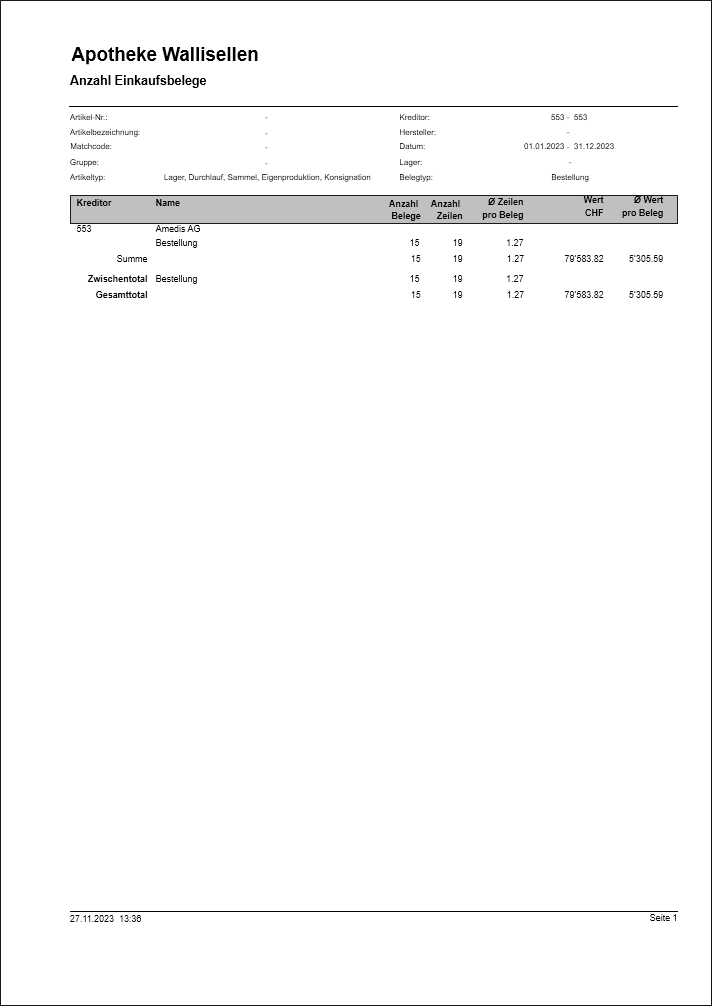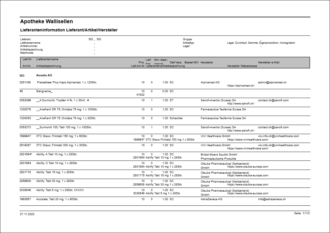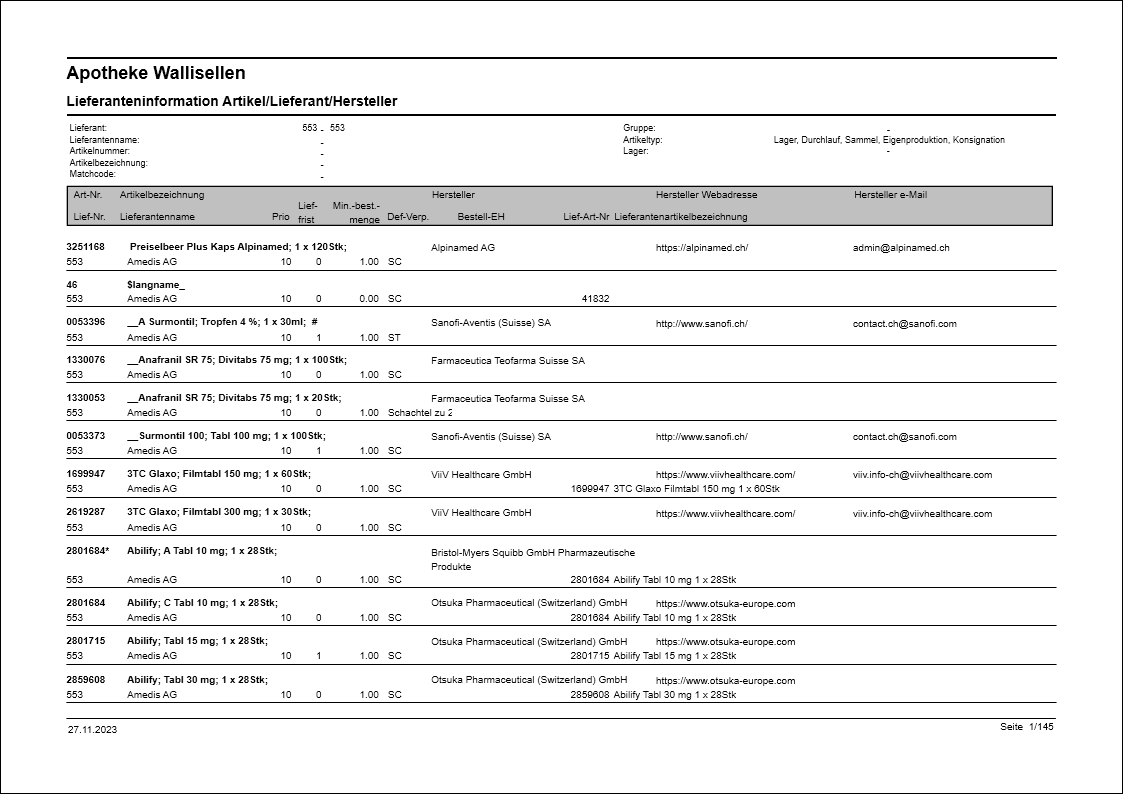 Lieferanteninformation nach Artikel / Lieferant / Hersteller