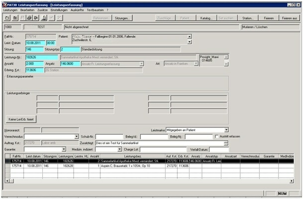 Der MatMan-Belegtext erscheint in der PatMan-Leistungserfassung (pat30) im Feld Zusatztext.