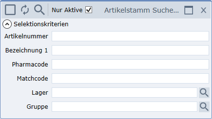 Dieses Suchfeld erlaubt Ihnen als Suchkriterium nach Artikel mit der selektierten Gruppe zu suchen.
