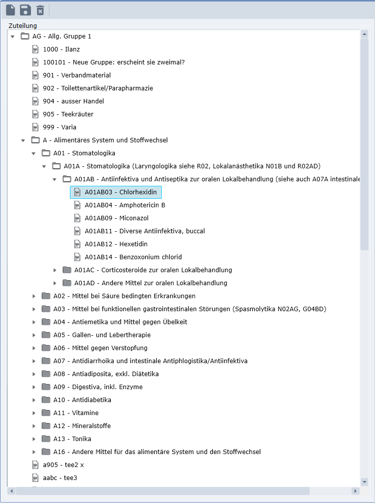 1. Allg. Gruppe1 (AG) | Artikelgruppe, in die der Artikel eingeteilt wird. Obligatorisch für Auswertungen und Arzneimittelliste. |