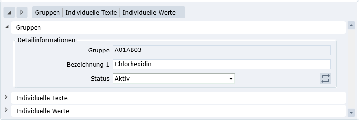 In diesem Register findet zum einen die Neuanlage statt und zum anderen zeigt es Details zur ausgewählten Gruppe.