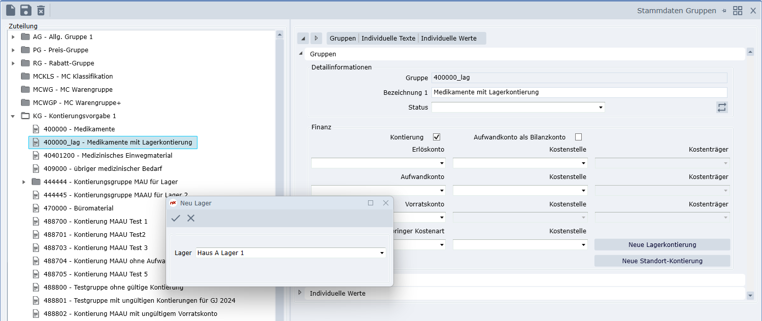 - Wählen Sie eine Hauptkontierung aus und wählen Sie "Neue Lagerkontierung"