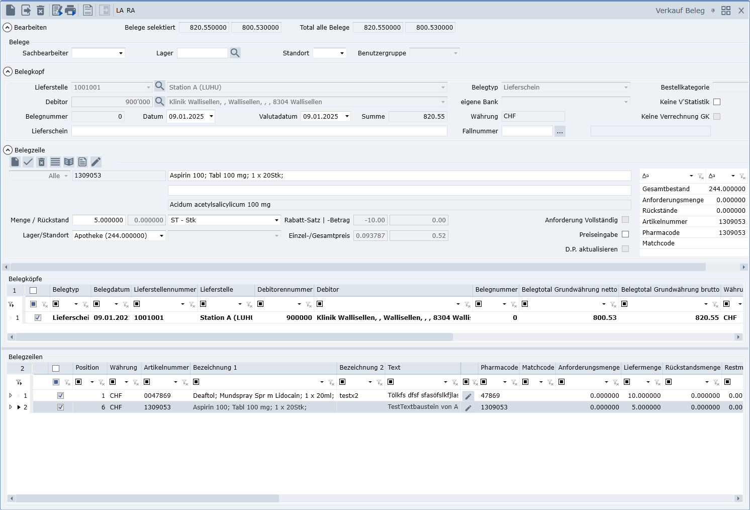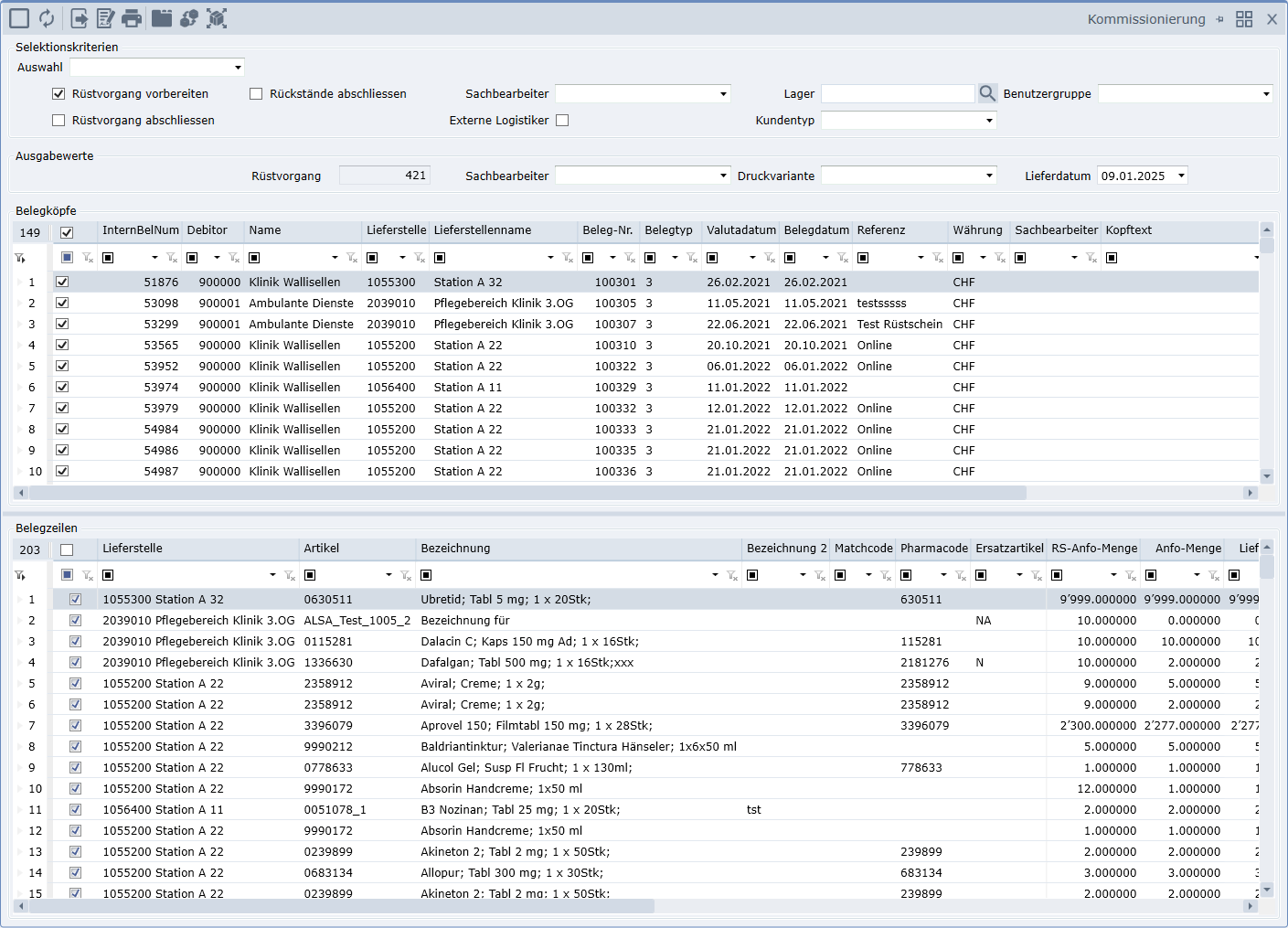 - In der Kommissionierung wird neben dem Abgangslager der Versorgungsstelle das Zugangslager der Stationen angezeigt.