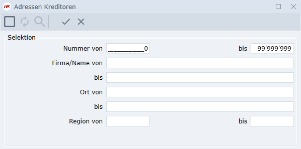 Nummer | Kreditoren-Nummer von 1 bis 99999999