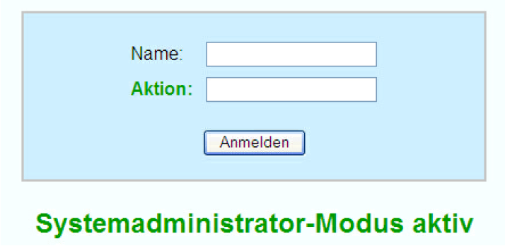 Der Systemadministrator, der u.a. für die Pflege der Benutzerlogins zuständig ist, hat mit folgenden Logins Zugriff über die Browser Oberfläche auf das System.