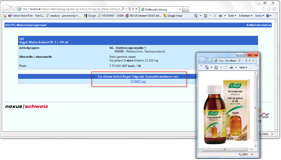 Pro Artikel können Bilder/Fotos hinterlegt und dem Anwender in der Artikelinformation angezeigt werden.