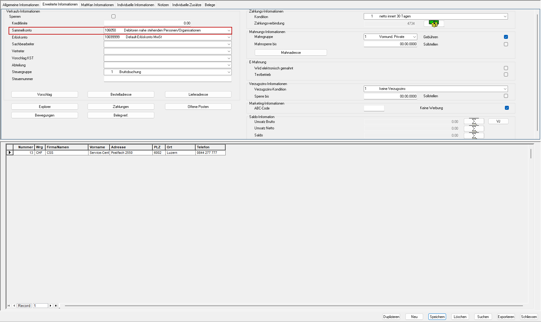 Die Kontierung ist für das Beispiel wie folgt hinterlegt: