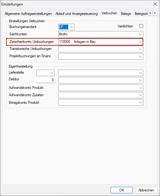 Scharnierkonto | 10790 Zwischenkonto Umbuchungen | Extras > Einstellungen |