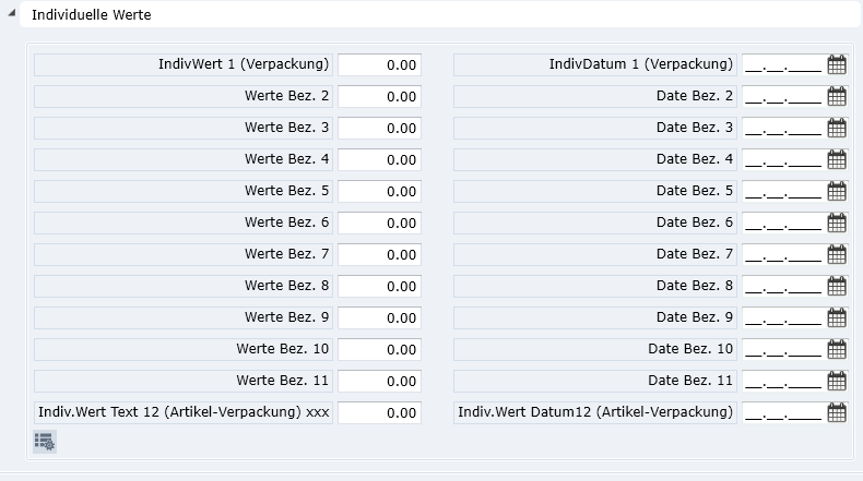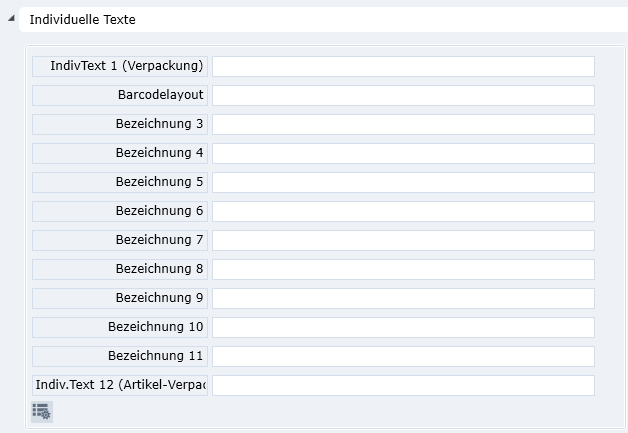 Anpassung der Feldbeschriftungen für die Individuellen Texte und Werte