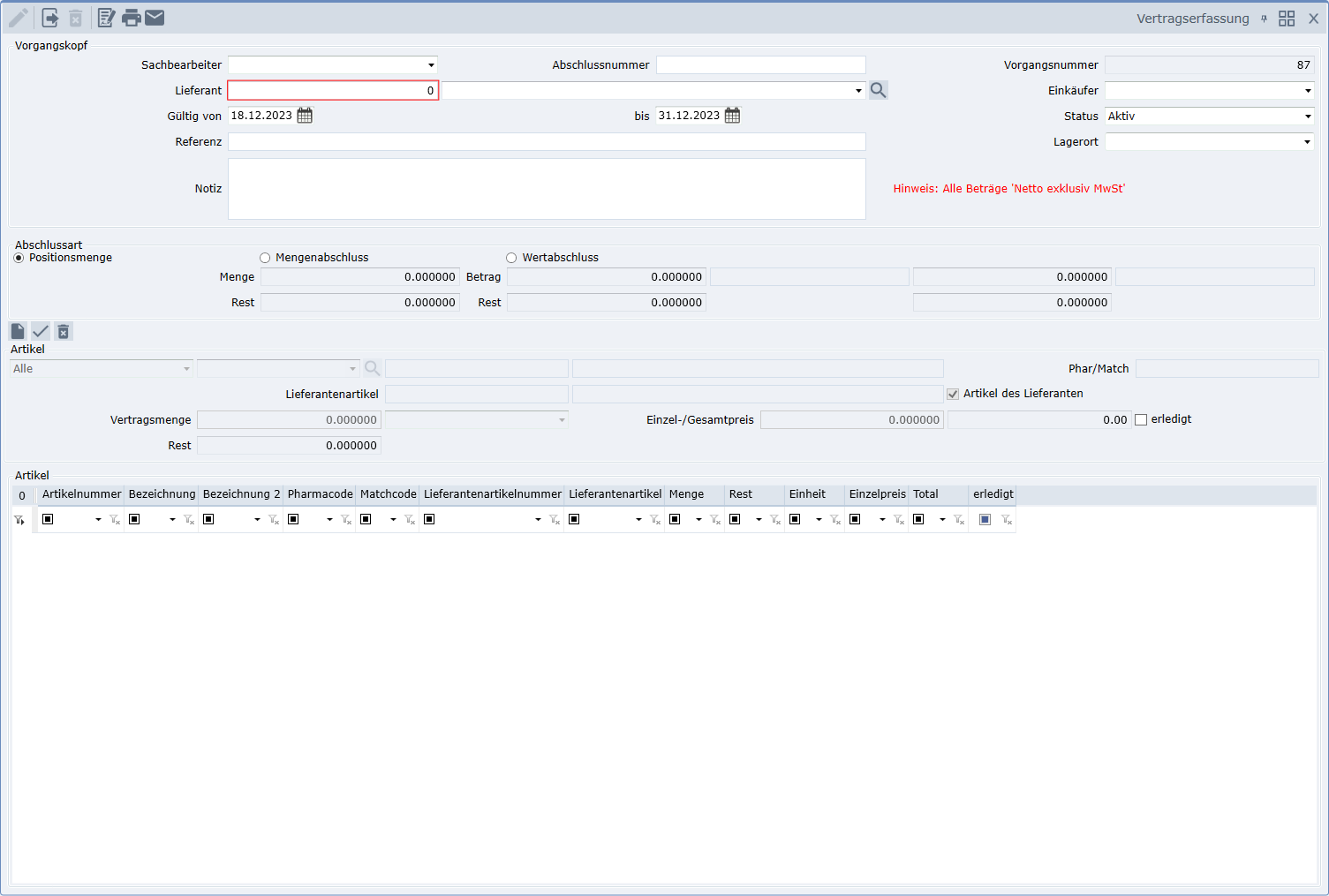 Abschlussart | Auswahl zwischen Positionsmenge, Mengenabschluss, Wertabschluss |