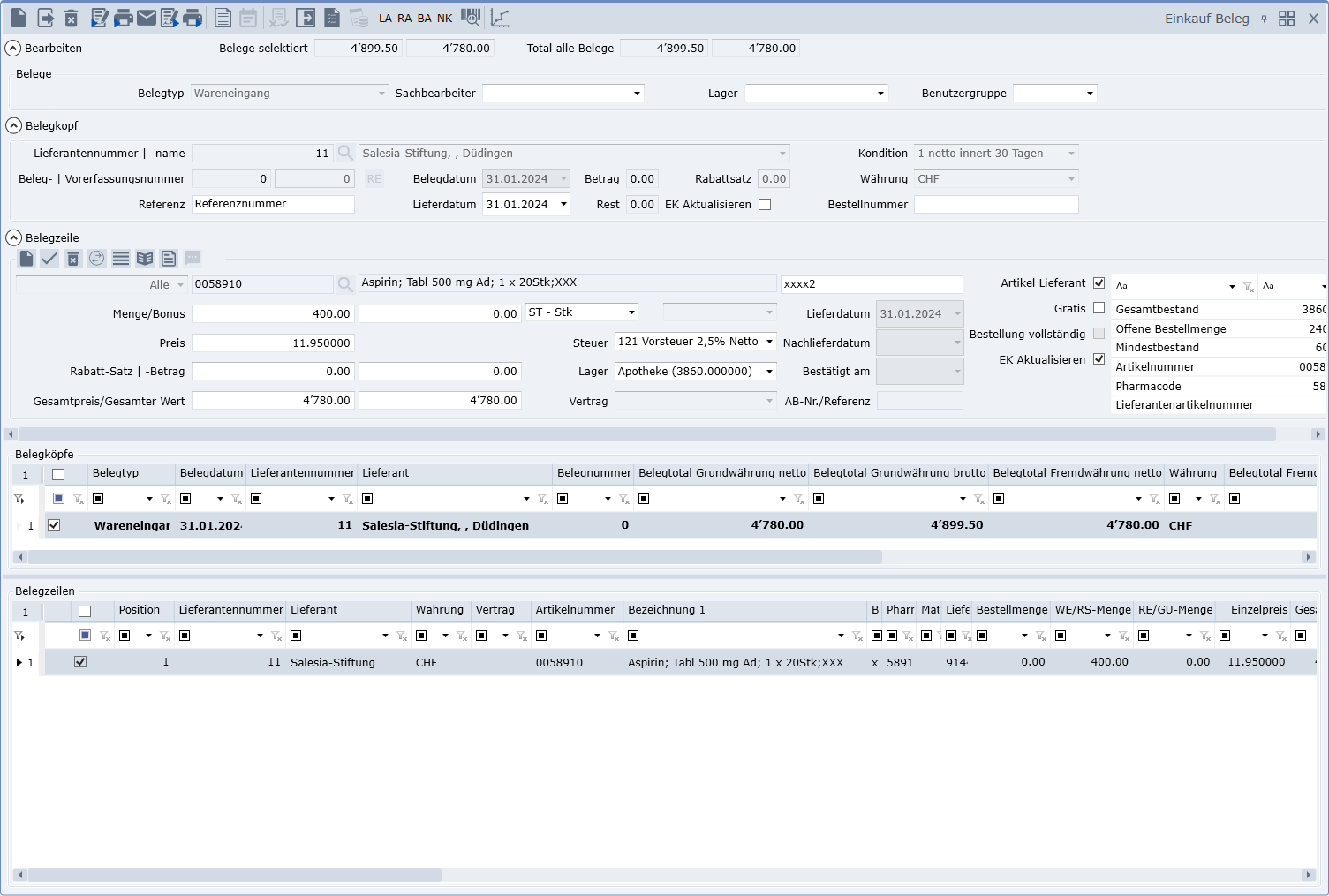- Erfassen Sie einen Lieferanten (über Nummer oder Name).