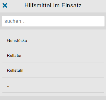 | Die Kataloge können durchsucht und Werte ausgewählt werden. Bei gewissen Angaben können auch mehrere Begriffe ausgewählt werden. Falls kein passender Begriff im Katalog gefunden wird, gibt es eine Möglichkeit selbst einen Begriff anzugeben: Der Eintrag mit den drei Punkten anwählen, danach passt sich das Feld mobile automatisch an und es kann ein Freitext eingegeben werden.