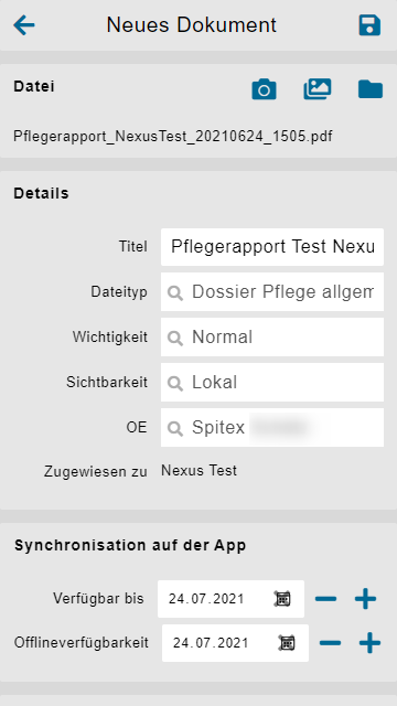 Gültigkeit eines Dokumentes (in Tage) | Wie lange (in Tage) ist ein Dokument gültig bzw. wie lange wird das Dokument auf der NEXUS / SPITEX App angezeigt. |