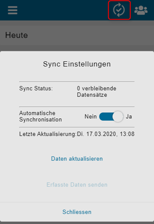 Automatische Synchronisation | Die Auto Synchronisation ist standardmässig ein oder ausgeschaltet. Für EIN wird das Häkchen angewählt, für AUS muss das Häkchen entfernt werden. |