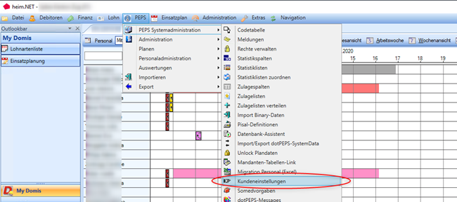 Dafür öffnet man die Kundeneinstellungen unter dem Register PEPS