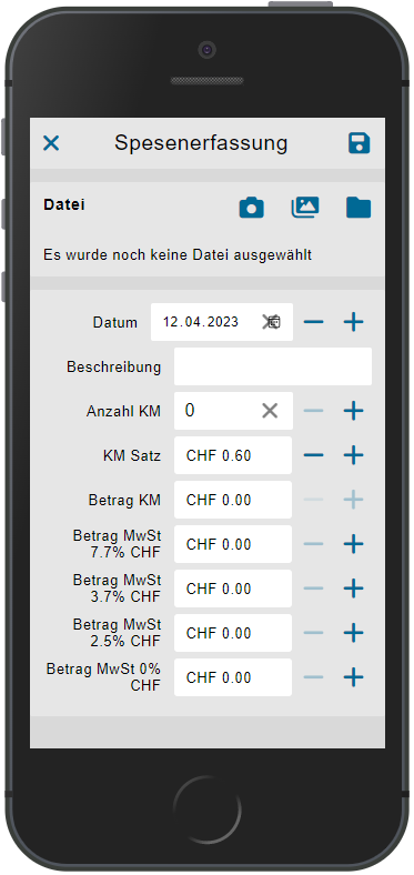 Falls es Kilometerspesen sind, kann einfach die Anzahl Kilometer eingegeben werden - die App rechnet anschliessende automatisch.