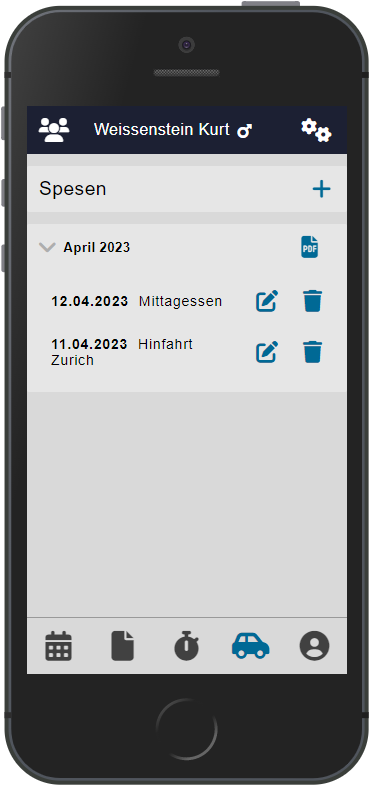 Das Spesenmodul entspricht einem standardisierten Spesenprozess und sollte in den Funktionen selbsterklärend sein.