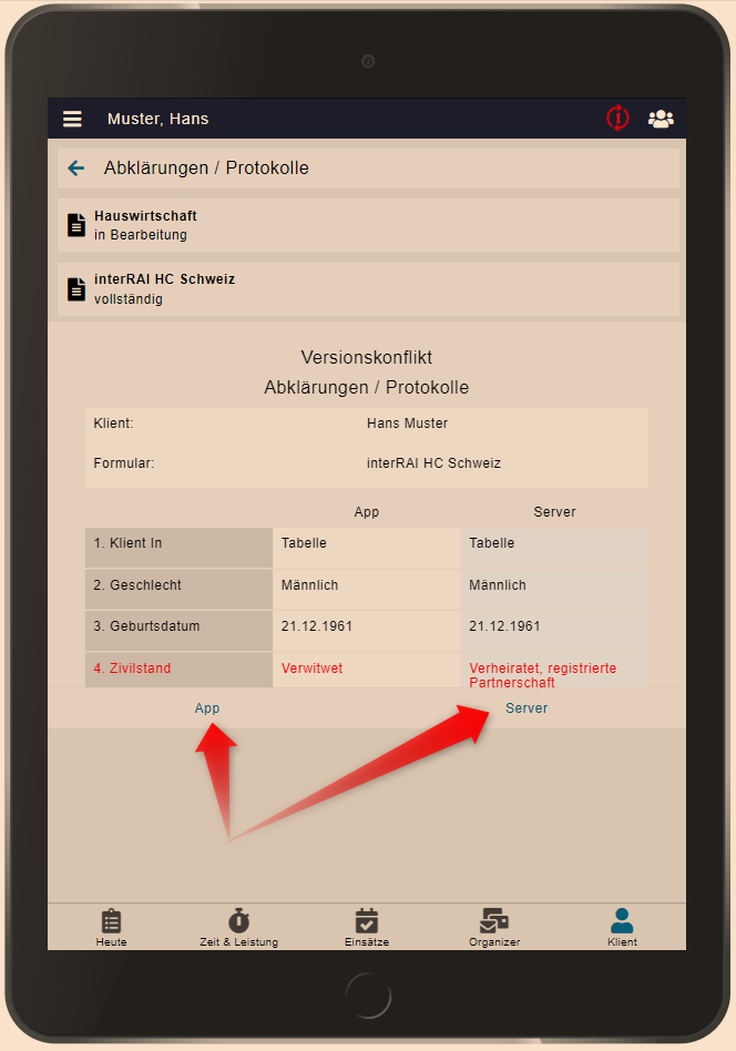 Die App Version kann behalten werden. Das heisst, der Serverbestand (Desktop) wird überschrieben. Es kann aber vorkommen, dass der Konflikt Appseitig nicht aufgelöst werden kann. Der Konflikt erscheint dann immer wieder, bis die Serverversion angewählt wird.