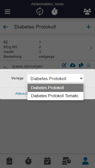 Sobald die Vorlage erstellt wurde, kann in der App mittels "Wolken" Symbol das Zusatzformular anhand des Berichts angezeigt werden: