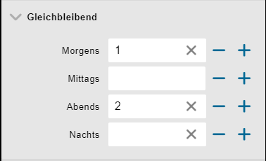 Eingegebene Zahlenwerte erhöhen oder senken. Am besten werden die Zahlenwerte direkt eingegeben.