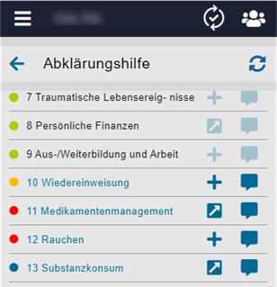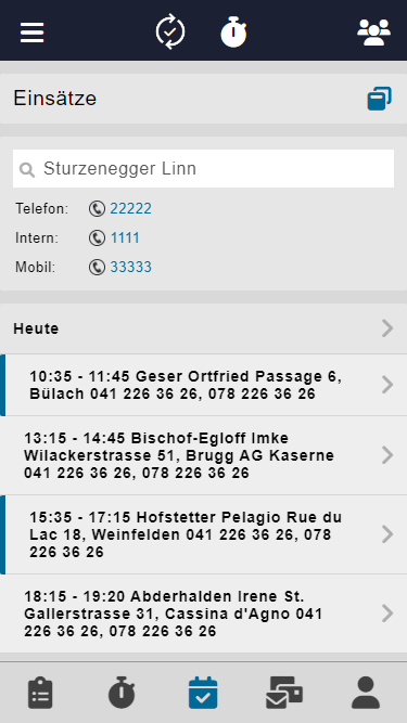 Übersicht der Einsätze mit Verlinkung zum Klienten.