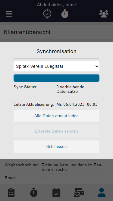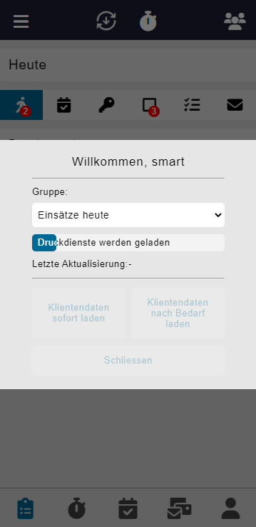 Sofern mit der Offline Synchronisation gearbeitet wird (manuelles Hochladen und Aktualisieren der Daten) gibt es eine weitere Funktion auf der Anmeldemaske.
