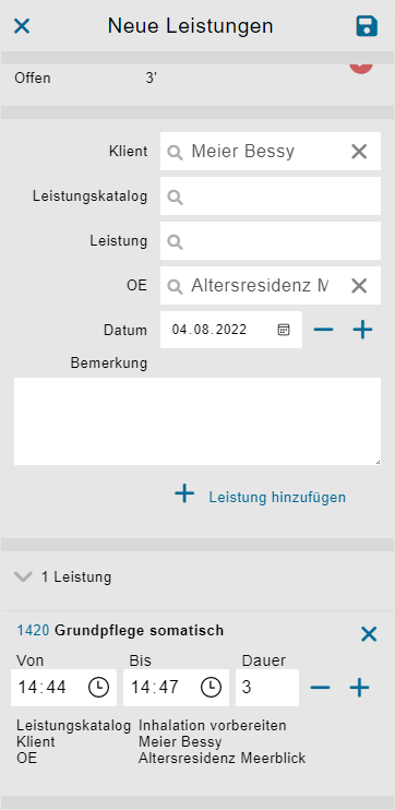 Erfassen von Zeiten und Leistungen