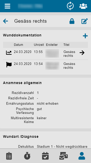 Eine Wunddokumentation kann von der Person, welche sie erstellt hat, einen Tag lang bearbeitet werden. Anschliessend ist diese schreibgeschützt und kann nicht mehr angepasst werden. Die Wunddokumentation ist per sofort schreibgeschützt wenn: