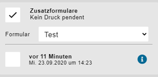 Zusatzformular: Das ausgewählte Zusatzformular kann gedruckt werden. Dabei erscheint eine zusätzliche Auswahl zwischen den verschiedenen ausgefüllten Zeitpunkten.