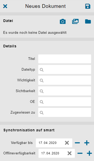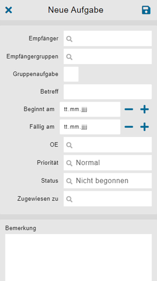 Ein neues Formular kann ausgefüllt werden. Das Grundgerüst der Felder wurde vorgängig in der Desktop Version definiert.