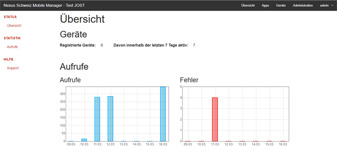 Das Register Übersicht zeigt eine Statistik der registrierten Geräte, der Anzahl Aufrufe und der Anzahl Fehler (falls es welche gibt).