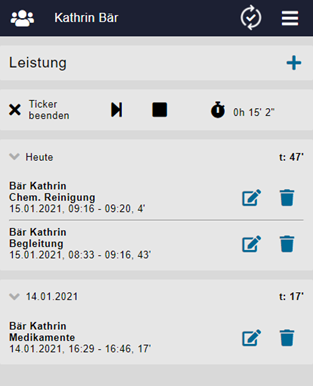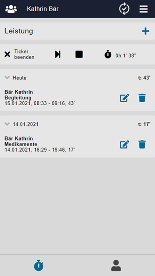 Erfasste Leistungen (egal ob mit dem Ticker oder manuell) können nachträglich bearbeitet werden.