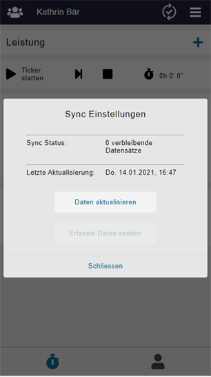 Sofern Offline gearbeitet wird (manuelles Hochladen und Aktualisieren der Daten) gibt es eine weitere Funktion auf der Anmeldemaske.