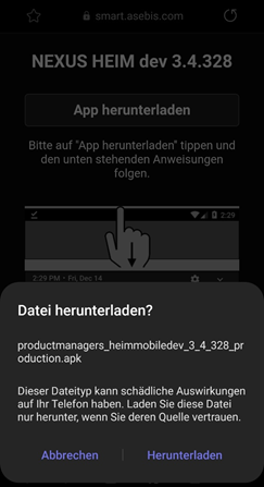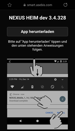 Installieren klicken und anschliessend die App herunterladen. Nach dem Herunterladen kann das *.apk File geöffnet und installiert werden.
